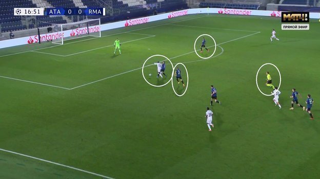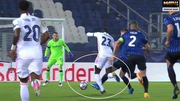 Более того, Штилер сам моментально квалифицировал нарушение правил как лишение соперника явной возможности забить гол. Так как Менди хотя и убрал мяч немного влево, он все равно продолжал контролировать его. При этом ни один из игроков «Аталанты» уже не мог помешать мадридцу убежать один на один с вратарем.