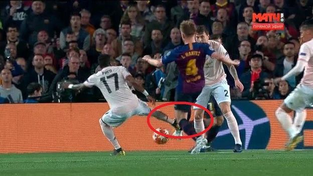 На повторах видно, что Фред совершил одно за другим три движения: сначала попал своей правой ногой в правую ногу соперника, спустя мгновение сыграл в мяч, а еще чуть позже попал Ракитичу ногой в левую ногу. Возможно, Брих обратил внимание только на второе действие полузащитника "МЮ" и решил, что в такой ситуации пенальти назначать нельзя.