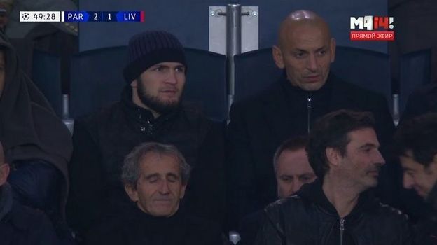 Хабиб Нурмагомедов на матче "ПСЖ" - "Ливерпуль". В крутой компании
