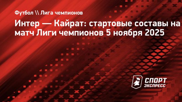 Стали известны стартовые составы «Интера» и «Кайрата» на матч 4-го тура общего этапа Лиги чемпионов.
