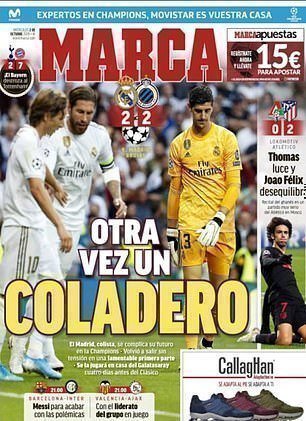 Испанские газеты выражают обеспокоенность неудачным стартом «Реала» в групповом турнире Лиги чемпионов.