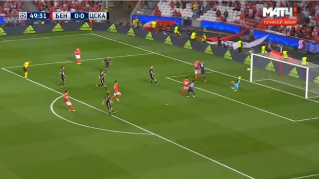 Гол "Бенфики" в ворота ЦСКА на 50-й минуте.