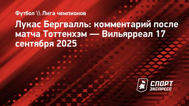 Полузащитник «Тоттенхэма» Лукас Бергвалль прокомментировал результат матча с «Вильярреалом» (1:0) в 1-м туре общего этапа Лиги чемпионов.