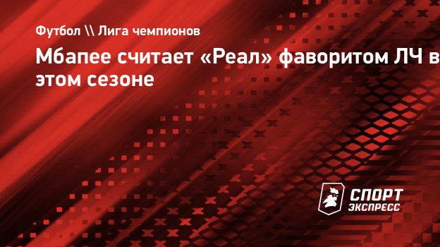 Нападающий «Реала» Килиан Мбаппе назвал фаворита Лиги чемпионов в этом сезоне.