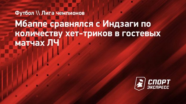 Мбаппе сравнялся с Индзаги по количеству хет-триков в гостевых матчах ЛЧ