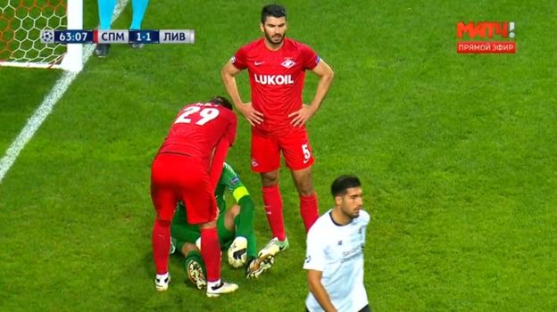 Ребров получает травму в стыке с Салахом. Здоровья! #СпартакЛиверпуль pic.twitter.com/ExOtm265oa