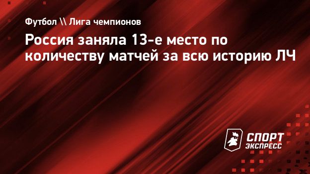Россия заняла 13-е место по количеству матчей за всю историю ЛЧ