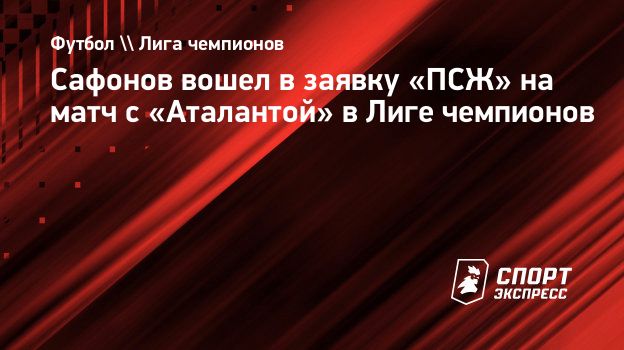 Российский вратарь «ПСЖ» Матвей Сафонов вошел в заявку команды на матч 1-го тура общего этапа Лиги чемпионов против «Аталанты», сообщает пресс-служба французского клуба.