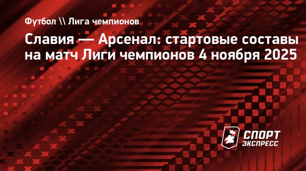 Стали известны стартовые составы «Арсенала» и «Славии» на матч 4-го тура общего этапа Лиги чемпионов.
