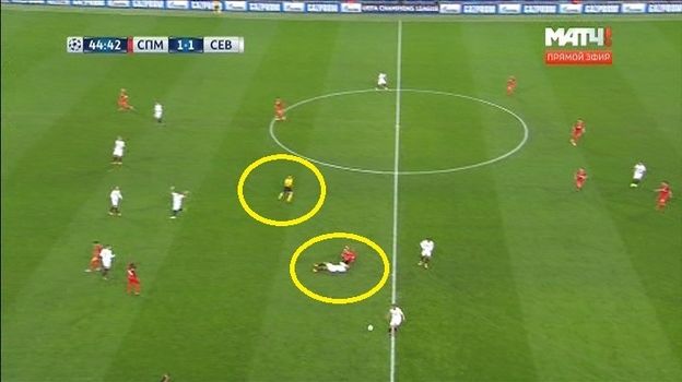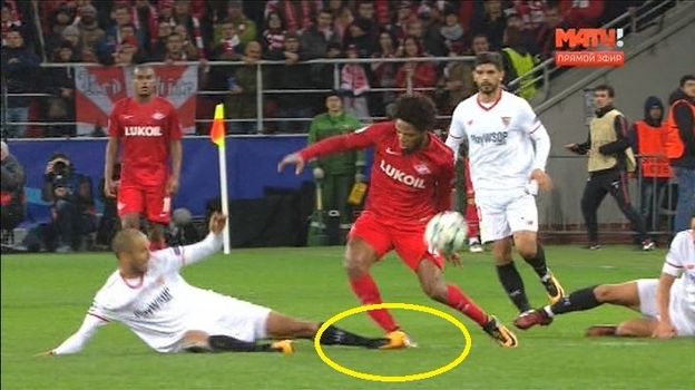 На 45-й минуте матча 3-го тура Лиги чемпионов "Спартак" – "Севилья" арбитр Джанлука Рокки не заметил грубость, допущенную Гвидо Писарро.