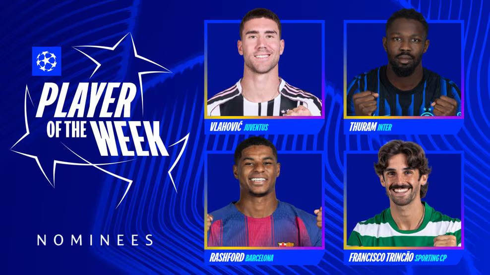 В голосовании участвуют Душан Влахович («Ювентус»), Маркус Тюрам («Интер»), Маркус Рэшфорд («Барселона») и Франсишку Тринкан («Спортинг»).