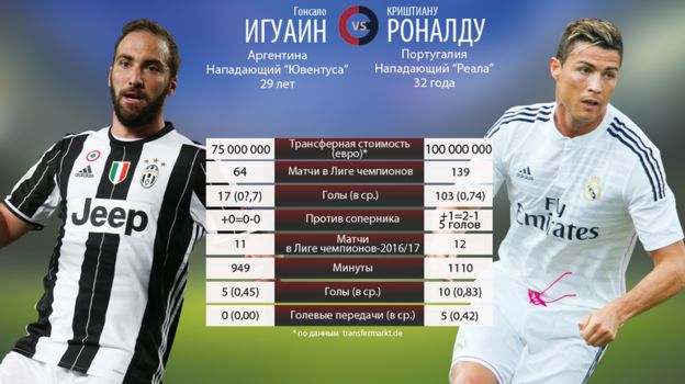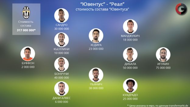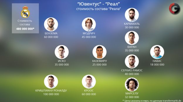 Перед главным матчем евросезона – финалом Лиги чемпионов – между "Ювентусом" и "Реалом" "СЭ" сравнил стоимость стартовых составов команд. Лидерство – за испанским суперклубом. Так, в составе "Королевского клуба" на поле выйдет самый дорогой футболист встречи – Криштиану Роналду, его стоимость оценивается в 100 миллионов евро. У "Старой синьоры", в свою очередь, выше всех оценивают Гонсало Игуаина – 75 миллионов евро.