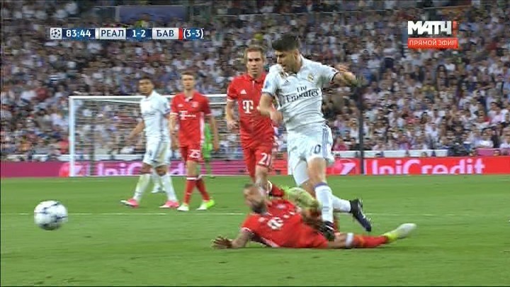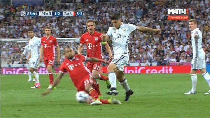 На 84-й минуте ответного матча 1/4 финала Лиги чемпионов "Реал" – "Бавария" арбитр Виктор Кошшои принял еще одно спорное решение, показав вторую желтую карточку Артуро Видалю и удалив его с поля. Игрок мюнхенцев в падении сыграл в мяч и выбил его из-под ног Марко Асенсио в направлении партнера. Затем Видаль поднял ногу и коснулся ей соперника, совершив подножку.