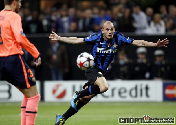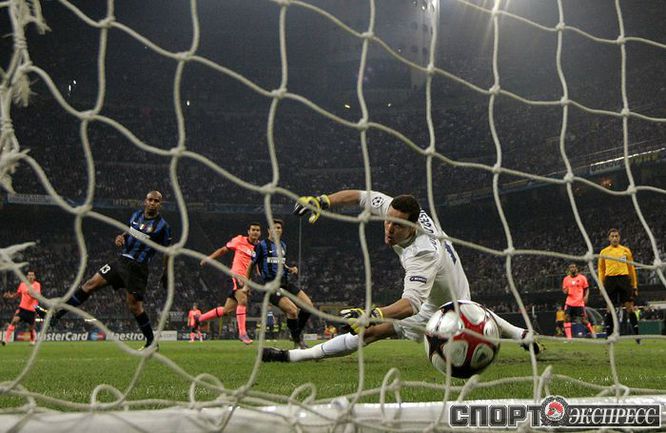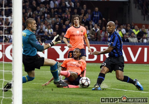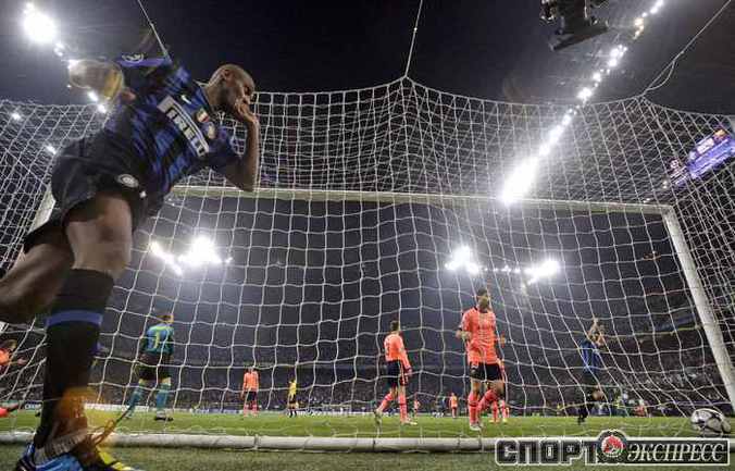 Футбол.Лига чемпионов. 1/2 финала. Первый матч. "Интер" (Италия) – "Барселона" (Испания) – 3:1 (1:1). Голы: Педро, 19 (0:1). Снейдер, 30 (1:1). Майкон, 48 (2:1). Милито, 61 (3:1). Фото REUTERS
