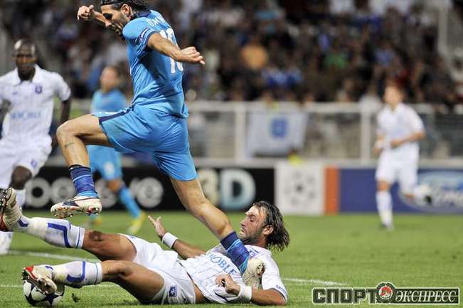 Лига чемпионов. 4-й отборочный раунд. Ответные матчи. "Осер" - "Зенит" - 2:0 (1:0). Голы: Ангбар, 9 (1:0). Елень, 53 (2:0). Фото AFP