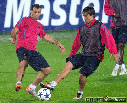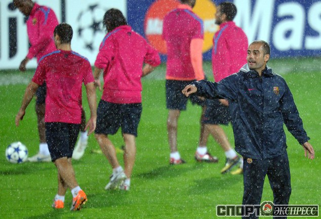 Накануне матча Лиги чемпионов против "Рубина" испанская "Барселона" провела тренировку на поле соперника. Фото AFP