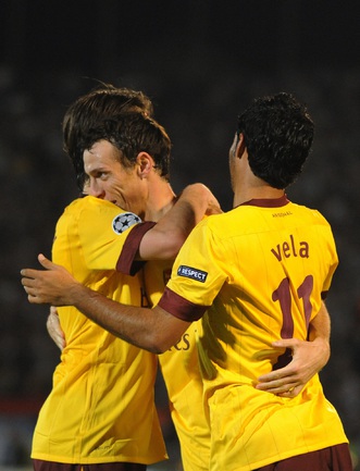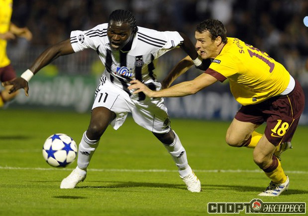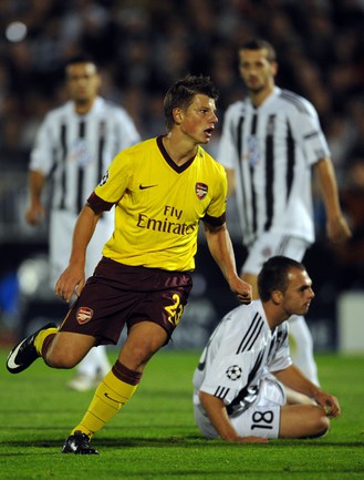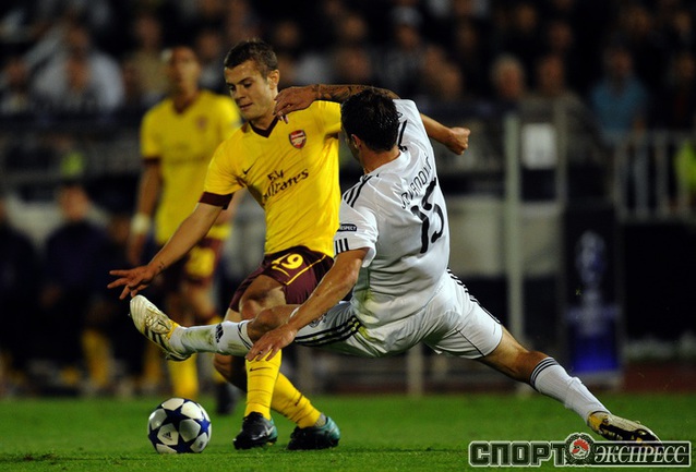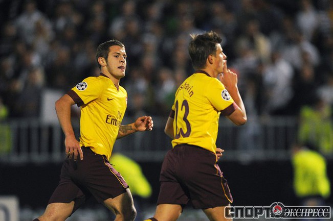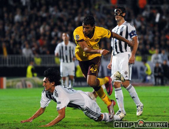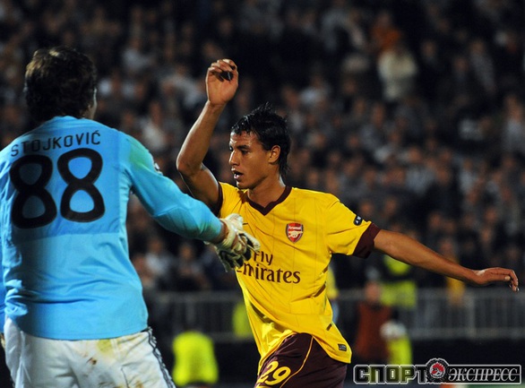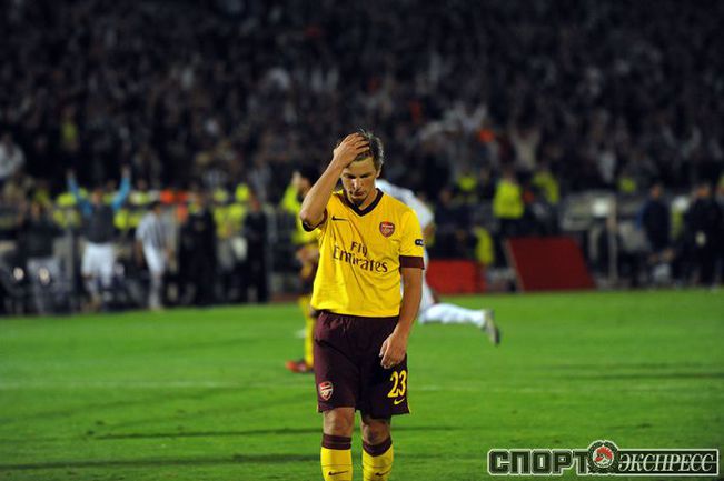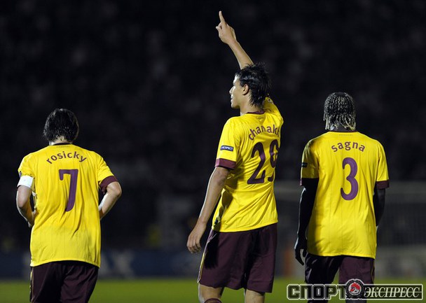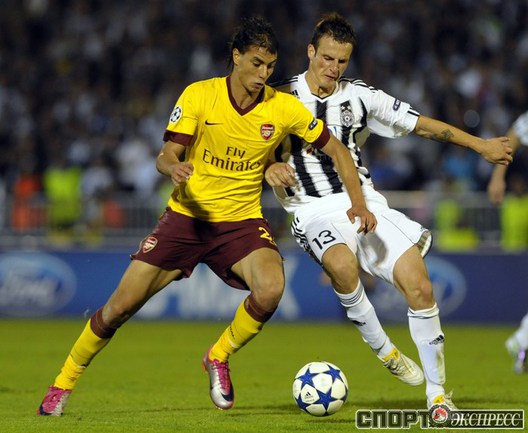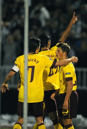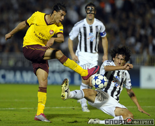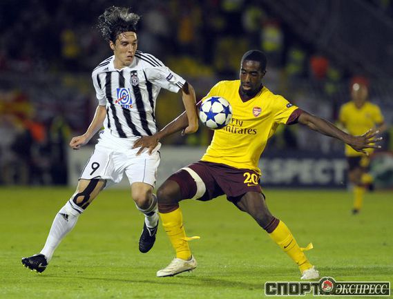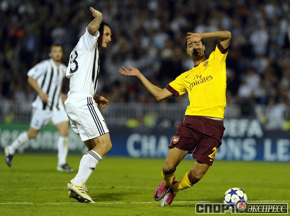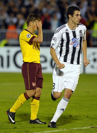 Лига чемпионов. Групповой турнир. Группа H. 2-й тур. "Партизан" (Сербия) - "Арсенал" (Англия) - 1:3 (1:1). Голы: АРШАВИН, 15 (0:1). Клео - с пенальти, 33 (1:1). Шамах, 71 (1:2). Скиллачи, 82 (1:3). Нереализованные пенальти: АРШАВИН, 57. Клео, 84. Фото AFP