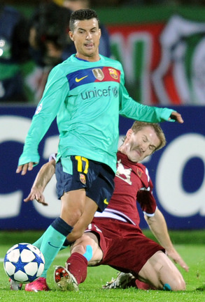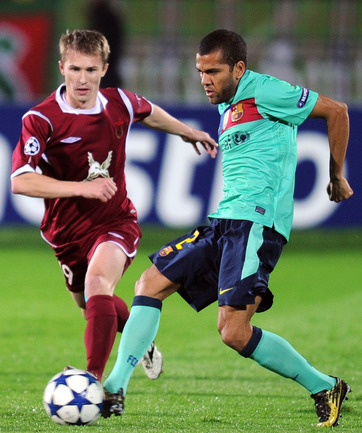Лига чемпионов. Групповой турнир. 2-й тур. Группа D. "Рубин" (Россия) - "Барселона" (Испания) - 1:1 (1:0). Голы: Нобоа, 30 - с пенальти (1:0). Вилья, 60 - с пенальти (1:1). Фото - AFP