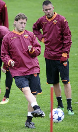 "Бавария" и "Рома" на тренировке накануне матча Лиги чемпионов. Фото AFP