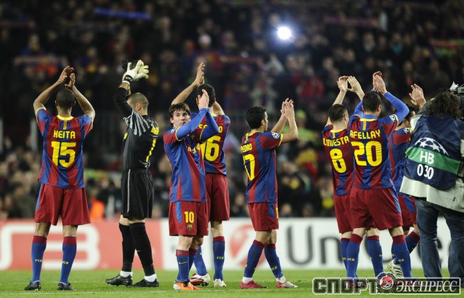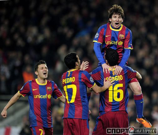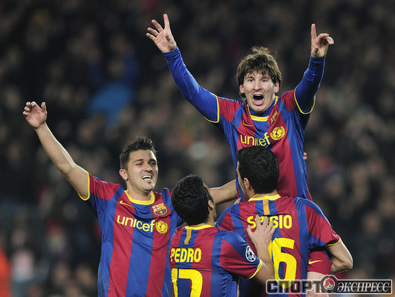 Лига чемпионов. 1/8 финала. Ответный матч. "Барселона" (Испания) - "Арсенал" (Англия) - 3:1 (1:0). Голы: Месси, 45+3 (1:0). Бускетс, 53 - в свои ворота (1:1). Хави, 69 (2:1). Месси, 71 - с пенальти (3:1). Россиянин Андрей Аршавин вышел на замену на 73-й минуте. Фото AFP