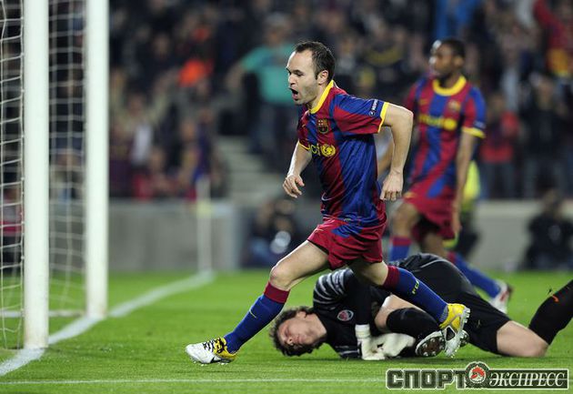 Лига чемпионов. 1/4 финала. Первый матч. "Барселона" (Испания) - "Шахтер" (Украина) - 5:1 (2:0). Голы: Иньеста, 2 (1:0). Алвес, 34 (2:0). Пике, 53 (3:0). Ракицкий, 60 (3:1). Кейта, 61 (4:1). Хави, 87 (5:1). Фото AFP
