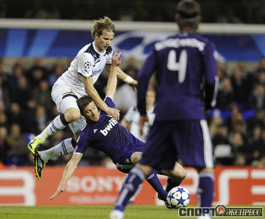 Лига чемпионов. 1/4 финала. Ответный матч. "Тоттенхэм" (Англия) - "Реал" (Испания) - 0:1 (0:0). Гол: Криштиану Роналду, 50. Первый матч: 0:4. Российский нападающий "шпор" Роман Павлюченко вышел в стартовом составе и отыграл весь матч. Фото AFP