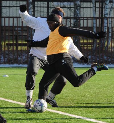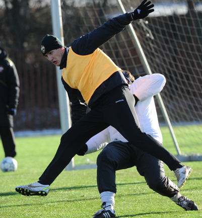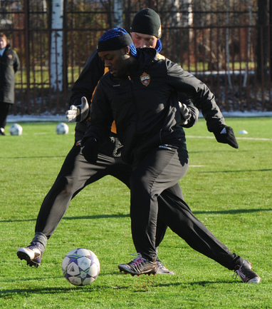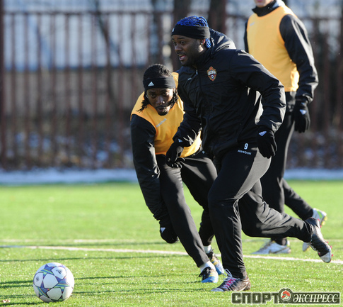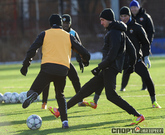 Футбол. Московские армейцы провели очередную тренировку перед матчем Лиги чемпионов против французского "Лилля". Из-за дисквалификации Сейду Думбья основным нападающим ЦСКА в предстоящем матче будет бразилец Вагнер Лав. Фото - Татьяна ДОРОГУТИНА, "СЭ"