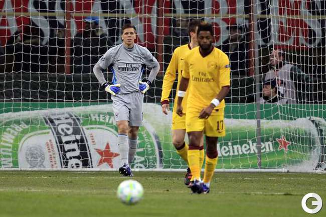 Футбол. Лига чемпионов. 1/8 финала. Первые матчи. "Милан" - "Арсенал" - 4:0 (2:0). Голы: Боатенг, 15 (1:0). Робинью, 38 (2:0). Робинью, 49 (3:0). Ибрагимович, 79, с пенальти (4:0). Россиянин Андрей Аршавин остался в запасе лондонсого клуба. Фото REUTERS