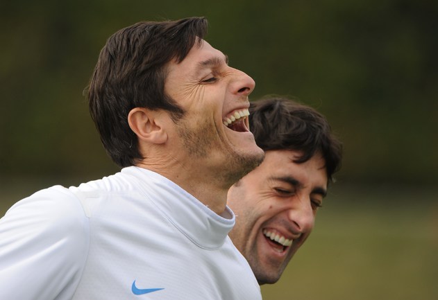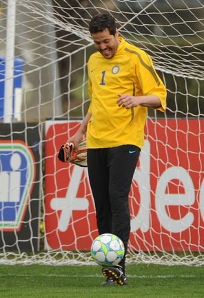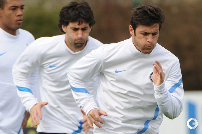 Миланский "Интер" на тренировке перед ответным матчем 1/8 финала Лиги чемпионов против "Марселя". Первый матч закончился со счетом 1:0 в пользу французского клуба. Фото AFP
