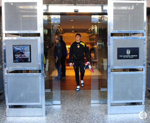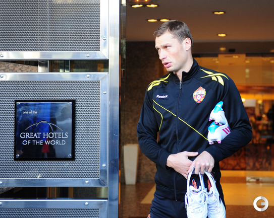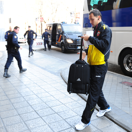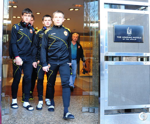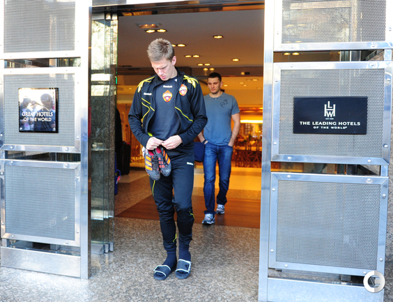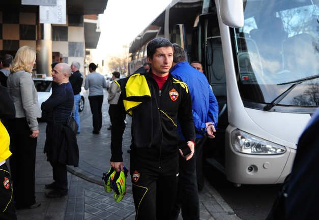 Мадрид. Футболисты ЦСКА прибыли в столицу Испании на ответный матч 1/8 финала Лиги чемпионов с "Реалом". Разместившись в отеле Hesperia Madrid, красно-синие отправились на тренировку. Фото Антона СЕРГИЕНКО, "СЭ Интернет"
