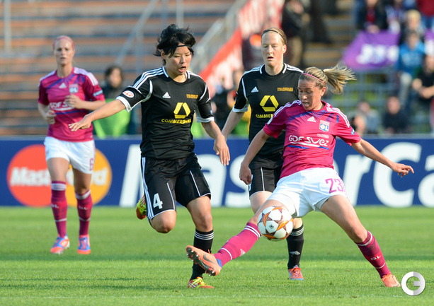Футбол. Лига чемпионов. Женщины. Мюнхен. "Лион" - "Франкфурт" 2:0 (2:0). Голы: Ле Сомме, 15 (П), Абили, 28. Футболисткам "Лиона" удалось отстоять титул сильнейшего клуба Европы. За игроой наблюдало 50212 зрителей. Фото AFP