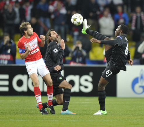 Футбол. Лига чемпионов. Групповой этап. Группа G. 2-й тур. "Спартак" (Россия) - "Селтик" (Шотландия) - 2:3 (1:1). Голы: Хупер, 12 (0:1). Эменике, 41 (1:1). Эменике, 48 (2:1). Комбаров, 71 - в свои ворота (2:2). Самарас, 90 (2:3). Фото - Александр ФЕДОРОВ, "СЭ"
