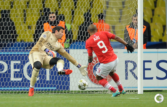 Лига чемпионов. Групповой турнир. 3-й тур. Группа G. "Спартак" (Россия) - "Бенфика" (Португалия) - 2:1 (2:1). Голы: Рафаэл Кариока, 3 (1:0). Лима, 32 (1:1). Жардел - 43, в свои ворота (2:1). Фото - Никита УСПЕНСКИЙ, "СЭ"