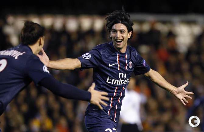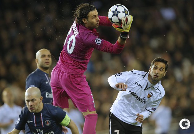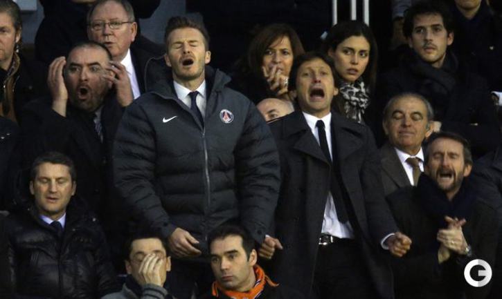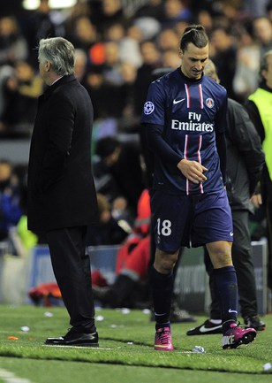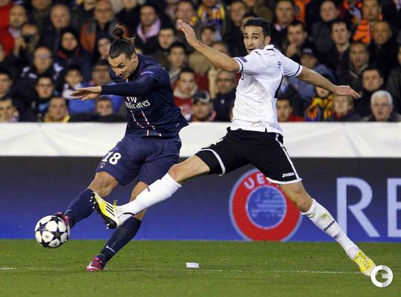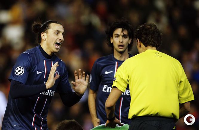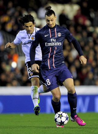 В первом матче 1/8 финала Лиги чемпионов "Валенсия" на своем поле уступила "ПСЖ" со счетом 1:2. Звездный новичок парижан Дэвид Бекхэм наблюдал за игрой с трибуны, а лидер команды Златан Ибрагимович уже в компенсированное время получил красную карточку. Фото AFP, REUTERS