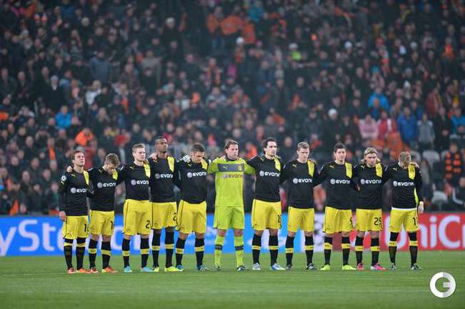 Футболисты «Шахтера» и «Боруссии» перед началом первого матча 1/16 финала Лиги Европы почтили минутой молчания память болельщиков, которые разбились в авиакатастрофе на пути в Донецк. Фото REUTERS и AFP