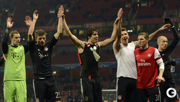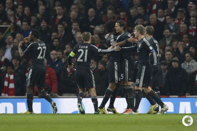В первом матче 1/8 финала Лиги чемпионов мюнхенская "Бавария" в гостях обыграла лондонский "Арсенал". Фото AFP, REUTERS