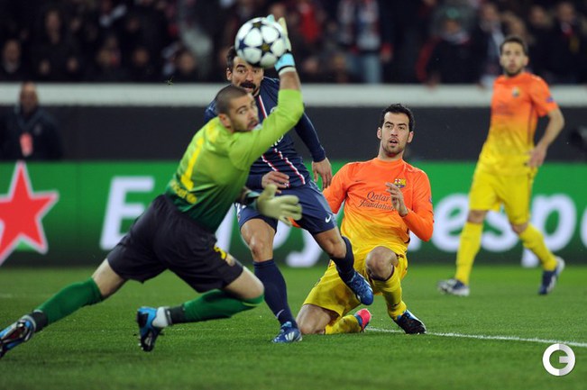 Париж. Футбол. Лига Чемпионов. Первый матч. 1/4 финала. "ПСЖ" - "Барселона" - 2:2 (0:1). Голы: Месси, 38 (0:1). Ибрагимович, 79 (1:1). Хави, 89 – с пенальти (1:2). Матюиди, 90+4 (2:2). Фото AFP и REUTERS