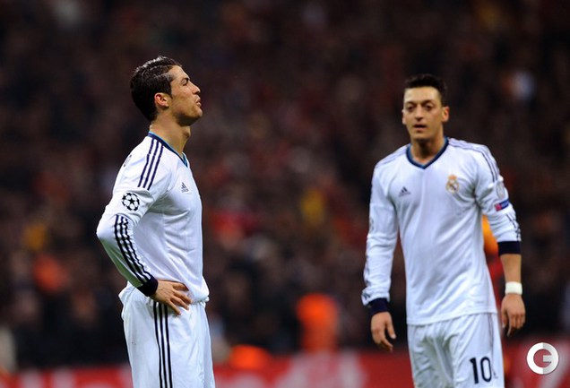 Футбол. Лига чемпионов. 1/4 финала. Ответный матч. "Галатасарай" (Турция) – "Реал" (Мадрид) – 3:2 (0:1). Голы: Криштиану Роналду (Хедира), 7 (0:1). Эбуэ (Снайдер), 57 (1:1). Снайдер, 70 (2:1). Дрогба, 72 (3:1). Криштиану Роналду, 90+2 (3:2). Фото AFP и REUTERS