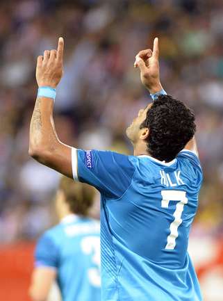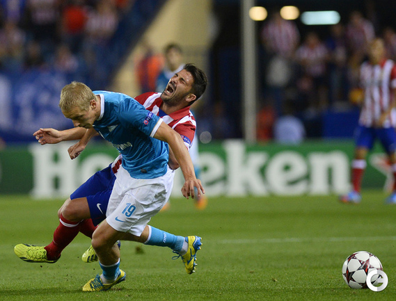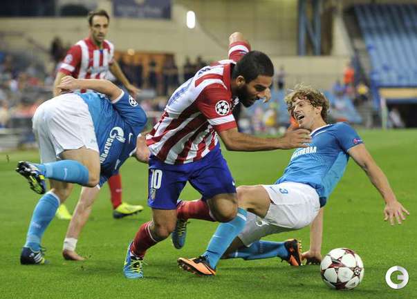 Футбол. Лига чемпионов. Групповой турнир. 1-й тур. Группа H. "Атлетико" (Испания) – "ЗЕНИТ" (Россия) – 3:1 (1:0). Голы: Миранда, 40 (1:0). Халк, 58 (1:1). Арда Туран, 64 (2:1). Леу Баптистан, 80 (3:1). Фото AFP