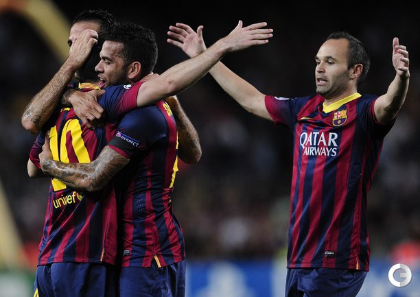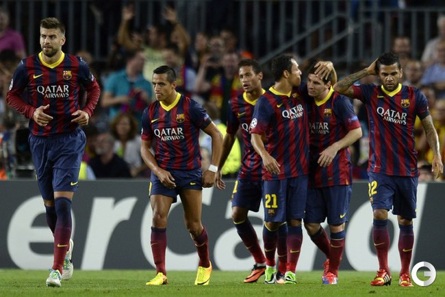 Лига чемпионов. Групповой турнир. 1-й тур. Группа H. "Барселона" (Испания) - "Аякс" (Голландия) - 4:0 (1:0). Голы: Месси, 22 (1:0). Месси (Серхио Бускетс), 55 (2:0). Пике (Неймар), 69 (3:0). Месси (Хави), 75 (4:0).Фото AFP