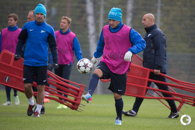 Футбол. Санкт-Петербург. "Зенит" провел заключительную тренировку перед матчем 2-го тура группового турнира Лиги чемпионов с "Аустрией" на своей базе в Удельной. Фото - Кристина Коровникова, "СЭ"