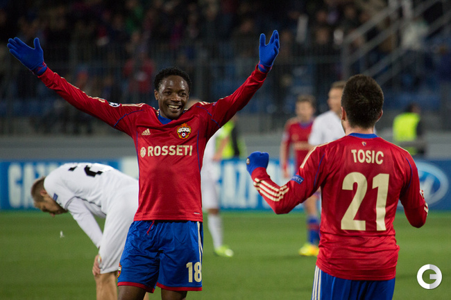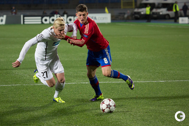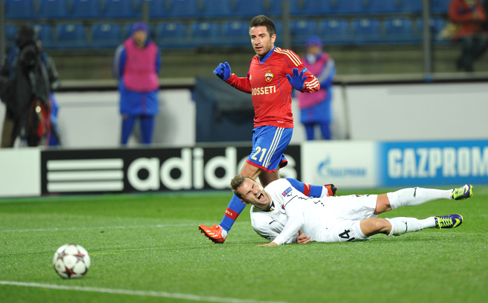 Футбол. Лига чемпионов. Групповой турнир. 2-й тур. Группа D. ЦСКА (Россия) – "Виктория" Пл (Чехия) – 3:2 (2:1). Голы: Райторал, 4 (0:1). Тошич, 19 (1:1). Хонда, 29 (2:1). Ржезник, 78 – в свои ворота (3:1). Бакош, 90+1 (3:2). Пропустив в начале игры, красно-синие закончили безголевую серию на 397-й минуте после мяча Зорана Тошича. После этого отличился Кейсуке Хонда, а во втором тайме мяч в свои ворота отправил Радим Ржезник – его под ногой пропустил Матуш Козачик. Фото - Александр Федоров, "СЭ" и Кристина Коровникова, "СЭ"