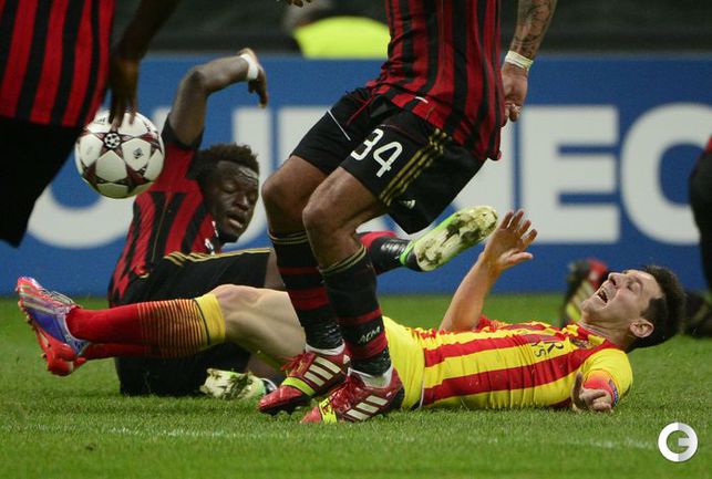 Футбол. Лига чемпионов. Групповой турнир. 3-й тур. Группа E. "Шальке" (Германия) – "Челси" (Англия) – 0:3 (0:1). Голы: Фернандо Торрес (Иванович), 5 (0:1). Фернандо Торрес (Оскар), 69 (0:2). Азар (Рамирес), 87 (0:3). "Стяуа" (Румыния) – "Базель" (Швейцария) – 1:1 (0:0). Голы: Диас, 48 (0:1). Тату, 88 (1:1). Группа F. "Арсенал" (Англия) – "Боруссия" Д (Германия) – 1:2 (1:1). Голы: Мхитарян, 16 (0:1). Жиру, 41 (1:1). Левандовски, 82 (1:2). Группа H. "Милан" (Италия) – "Барселона" (Испания) – 1:1 (1:1). Голы: Робинью, 9 (1:0). Месси, 23 (1:1). "Селтик" (Шотландия) – "Аякс" (Голландия) – 2:1 (1:0). Голы: Форрест, 43 - с пенальти (1:0). Каяль, 54 (2:0). Шене, 90+4 (2:1). Фото AFP
