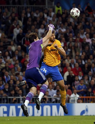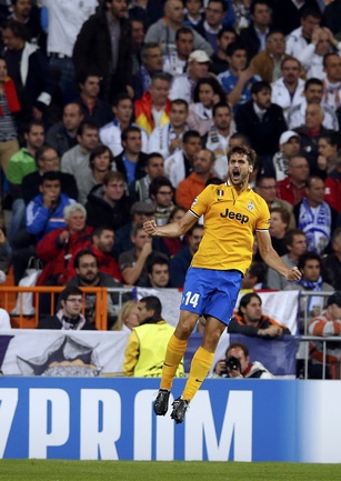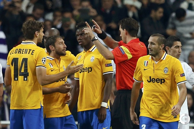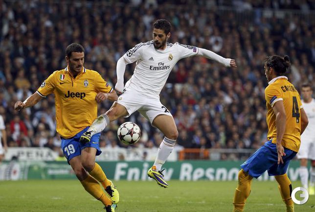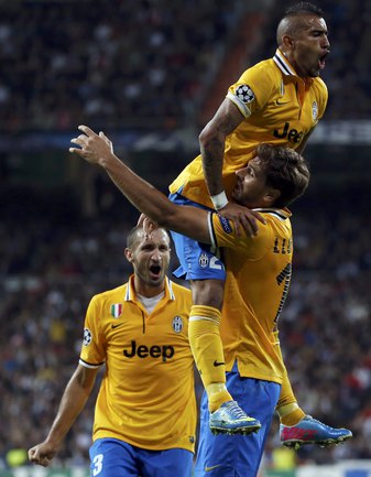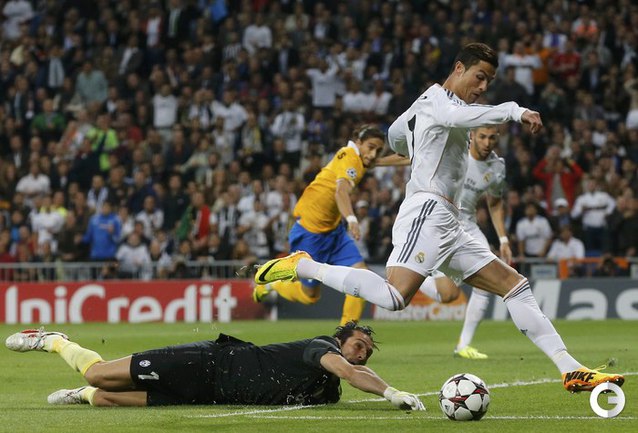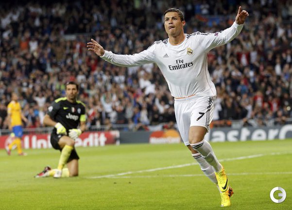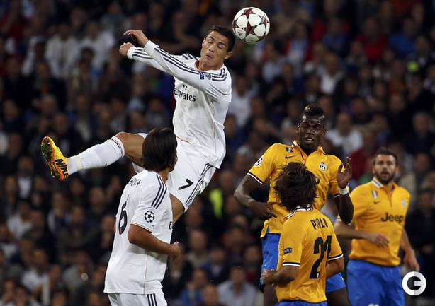 Мадрид. Футбол. Лига чемпионов. Групповой турнир. 3-й тур. Группа B. "Реал" – "Ювентус" – 2:1 (2:1). Голы: Криштиану Роналду, 4 (1:0). Льоренте, 22 (1:1). Криштиану Роналду, 29 – с пенальти (2:1)."Реал" одержал третью победу в Лиге чемпионов-2013/14, обыграв на своем поле "Ювентус" – 2:1. Несмотря на вызвавшее бурный протест со стороны гостей удаление Джорджо Кьеллини в начале второго тайма после столкновения с Криштиану Роналду, игра в целом получилась относительно равной. Тем не менее в итоге "Юве" потерпел первое поражение в этом розыгрыше, а "Реал" набрал максимальное число очков в трех матчах и находится в шаге от выхода в плей-офф Лиги чемпионов. Фото AFP