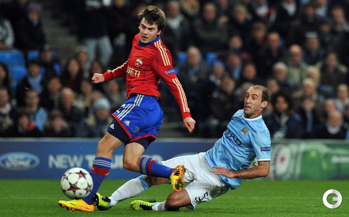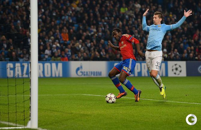 Лига чемпионов. Групповой турнир. 4-й тур. Группа D. "Манчестер Сити" (Англия) – ЦСКА – 5:2 (3:1). Голы: Агуэро, 3 – с пенальти (1:0). Агуэро, 20 (2:0). Негредо, 30 (3:0). Думбья, 45+1 (3:1). Негредо, 51 (4:1). Думбья, 71 – с пенальти (4:2). Негредо, 90+2 (5:2). Фото - REUTERS и AFP