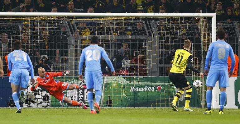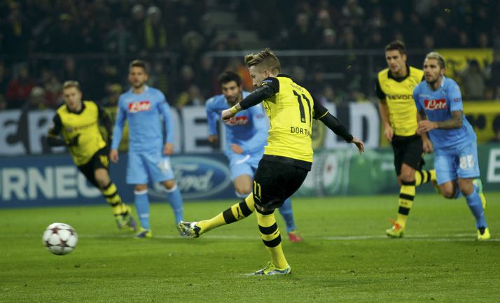 Лига чемпионов. Групповой турнир. 5-й тур. Группа F. "Боруссия" Д (Германия) – "Наполи" (Италия) – 3:1 (1:0). Голы: Ройс, 10 – с пенальти (1:0). Блащиковски, 60 (2:0). Инсинье, 71 (2:1). Обамеянг, 78 (3:1). Фото AFP, REUTERS