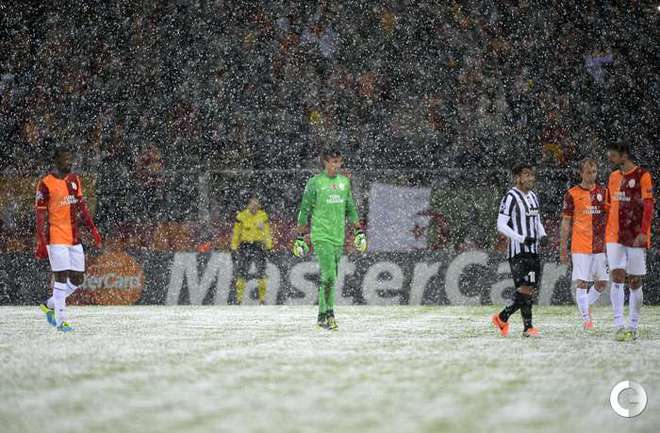 Стамбул. "Галатасарай" - "Ювентус". Матч 6-го тура группового турнира Лиги чемпионов отменен из-за обрушившегося на Стамбул сильного снегопада. Поединок будет доигран сегодня, в 16:00 по московскому времени. Фото AFP, REUTERS