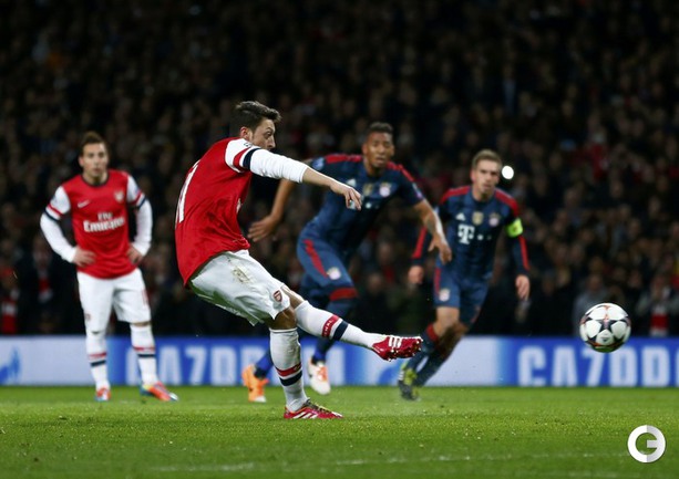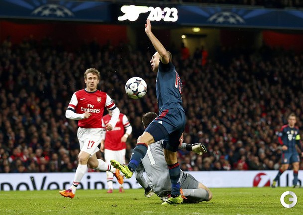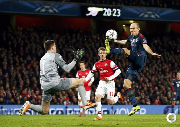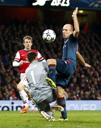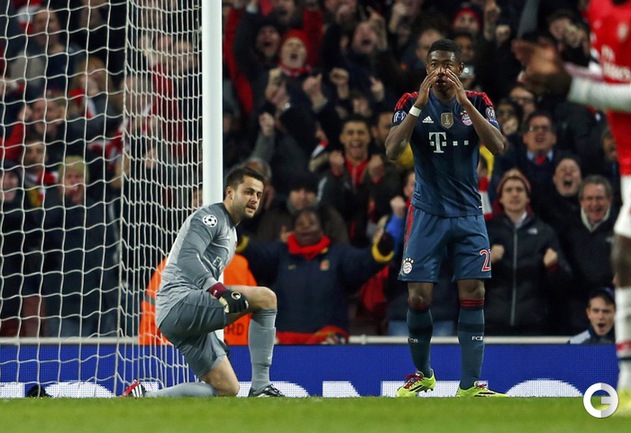 Лига чемпионов. Плей-офф. 1/8 финала. Первый матч. "Арсенал" (Англия) – "Бавария" (Германия) – 0:2 (0:0). Голы: Кроос, 54 (0:1). Мюллер, 88 (0:2).. Нереализованные пенальти: Езил, 8 (вратарь), Алаба, 40 (штанга). Фото AFP, REUTERS