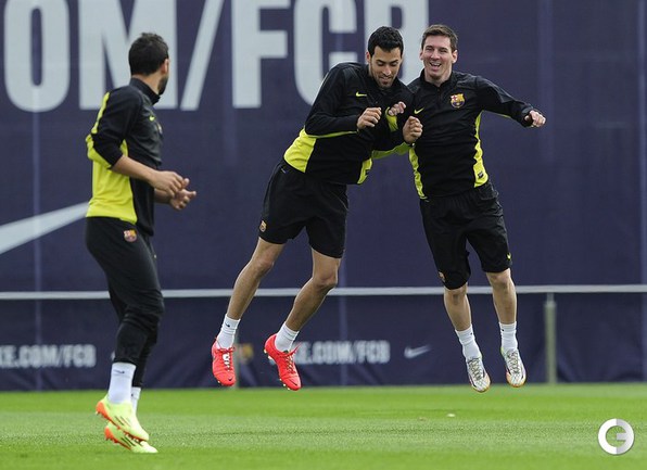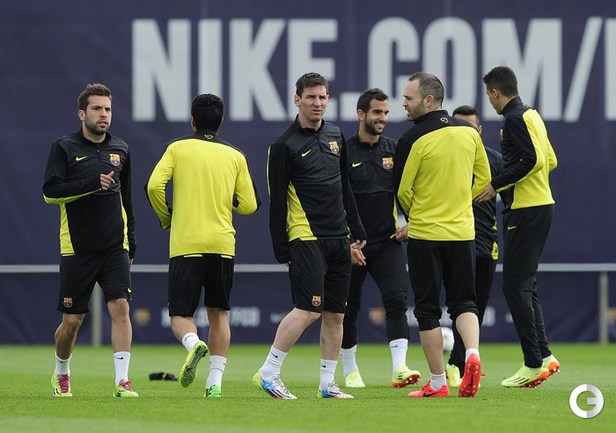 Футболисты "Барселоны" готовятся к первому матчу 1/4 финала Лиги чемпионов против "Атлетико". Фото AFP
