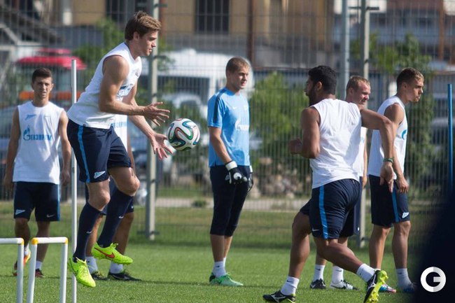 "Зенит" провел тренировку в преддверии ответного матча 3-го квалификационного раунда Лиги чемпионов против кипрского АЕЛ. Фото Кристина КОРОВНИКОВА, "СЭ"